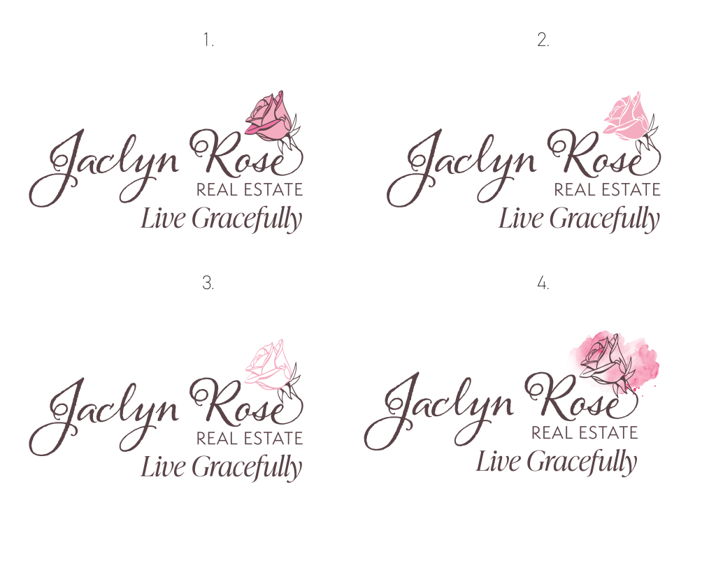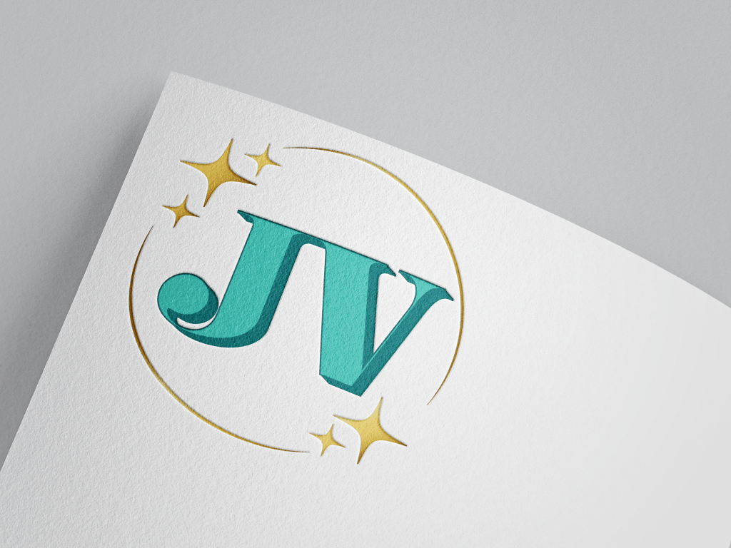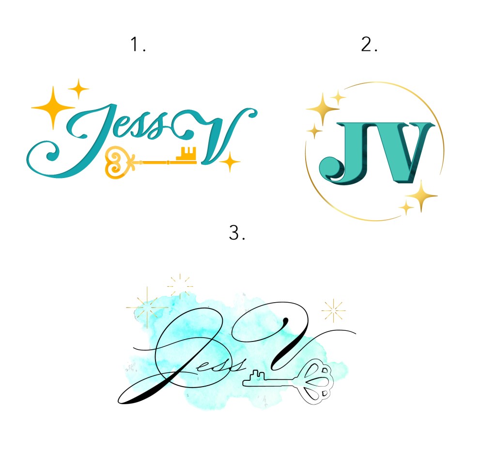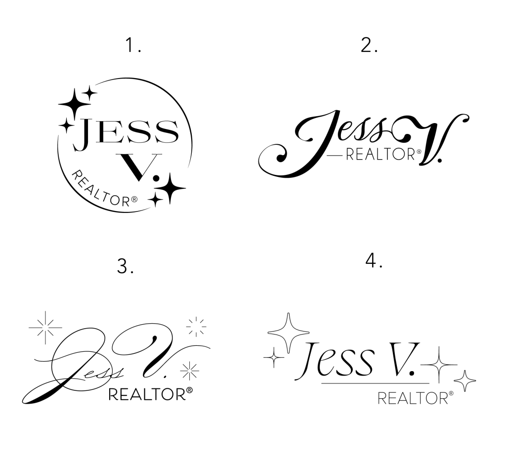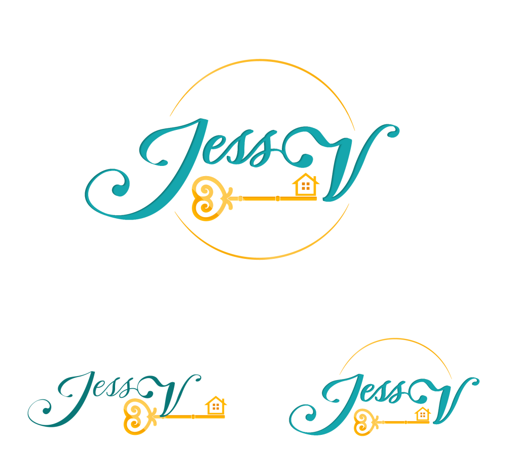 Jess V. wanted a logo with a modern and luxurious feeling. We would always start with our logos in black and grey, to ensure that the composition and design works on its own, and then add color later. Jess selected her favorites with some slight edits, and wanted to go with a sea-green and gold color scheme.
