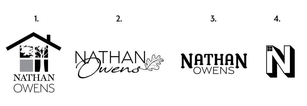 Nathan wanted a professional and modern logo. His logo was difficult because he was getting feedback and pressure from a few different sources, like his manager and his family. Eventually, I sat down with him alone and we discussed what he really wanted, which is that led to the third set of options, referencing the local Oak trees. He ended up going with a clean but still locally relevant that wasn’t too on-the-nose, and most importantly, it was a design he was happy with.