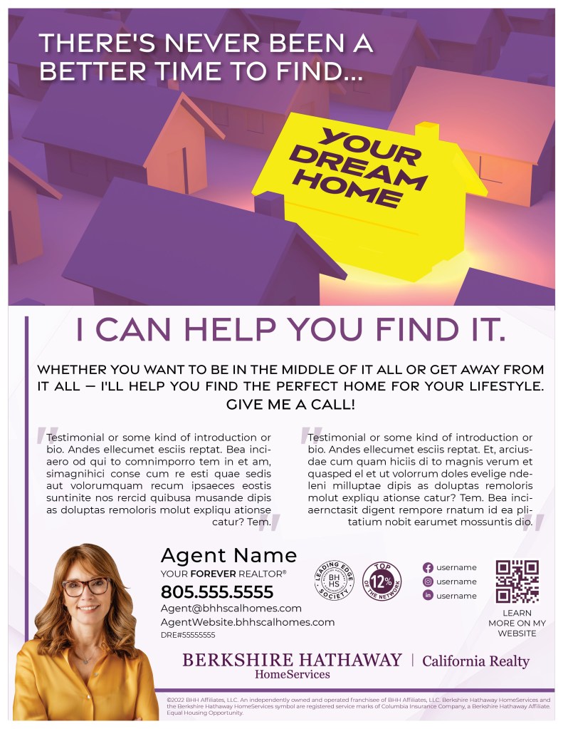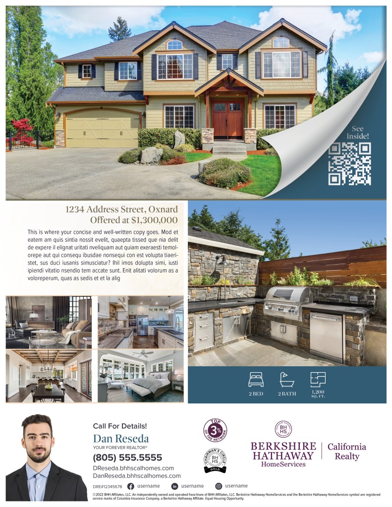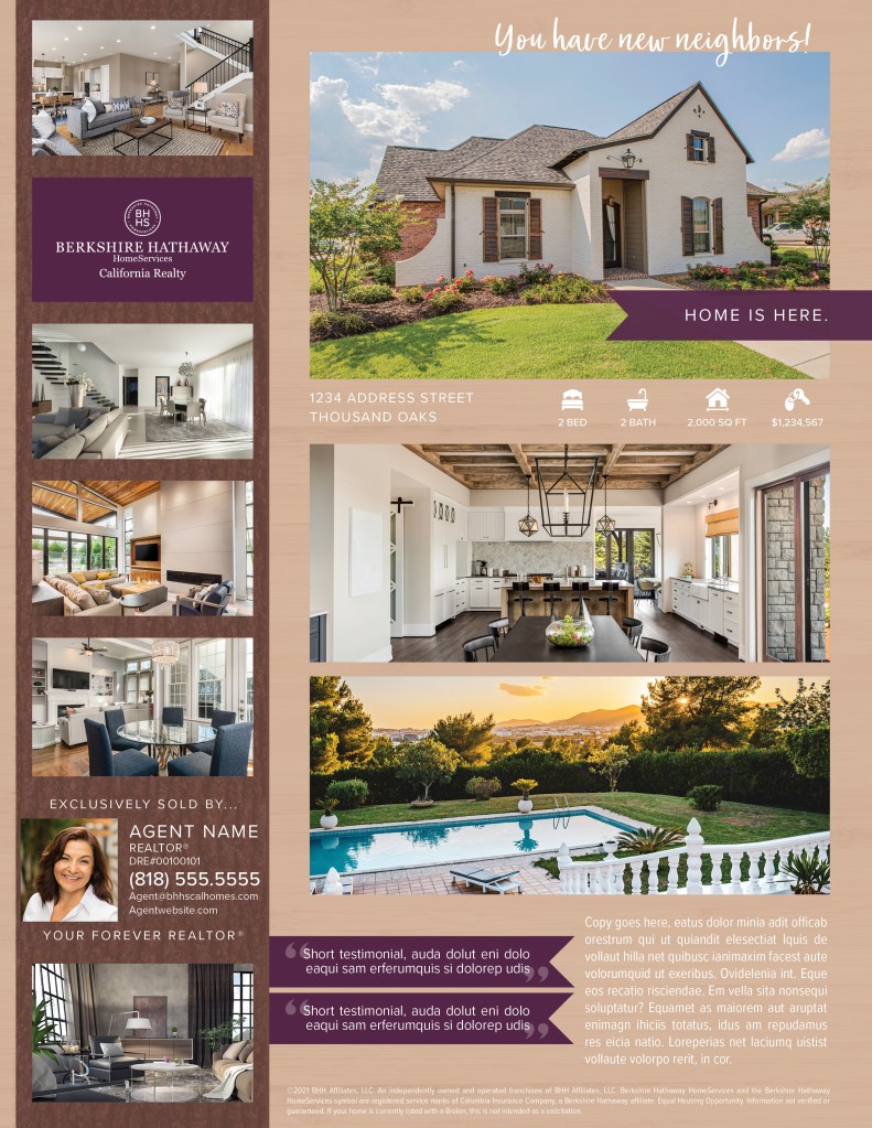 In my in-house role at Berkshire Hathaway HomeServices California Realty, we created several seasonal style guides, with a variety of templates the agents could choose from to promote their listings and their business.